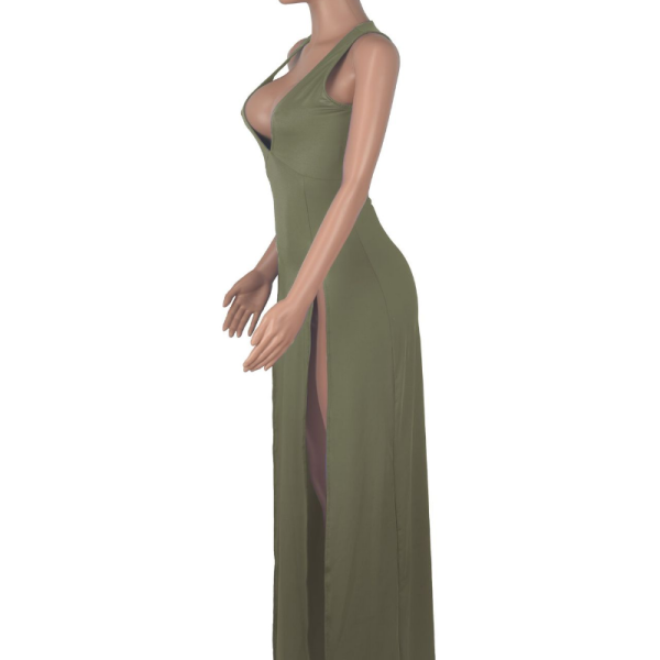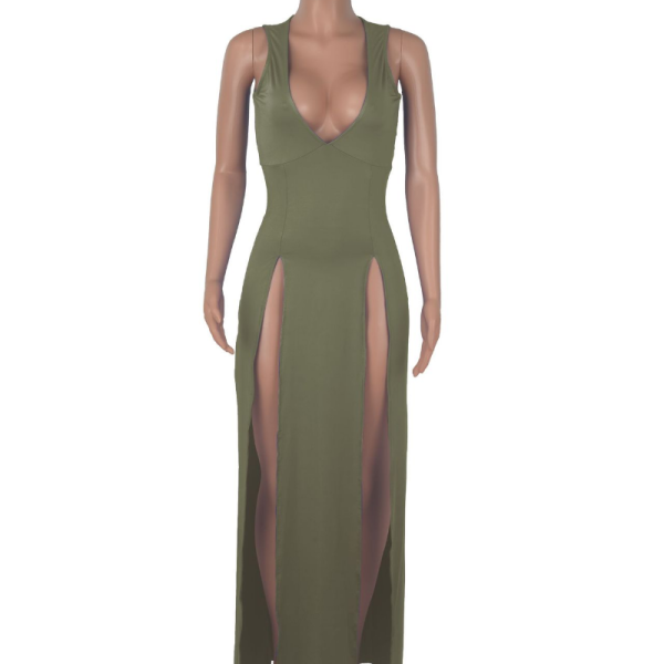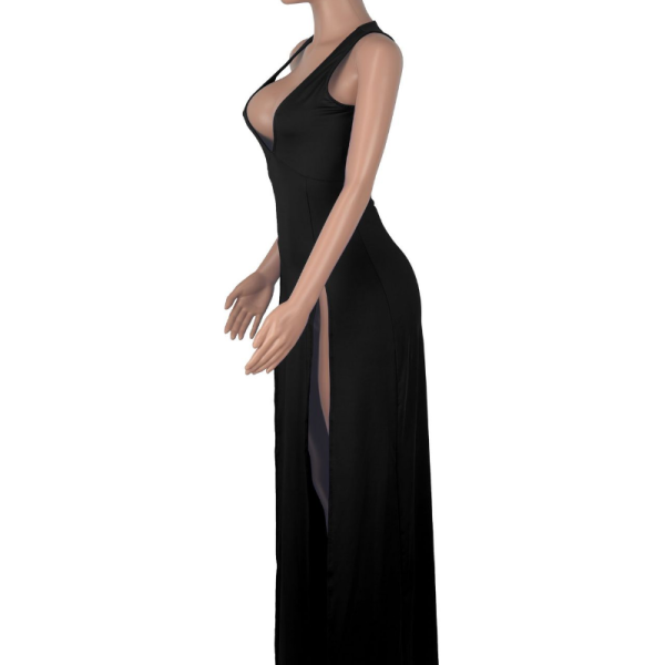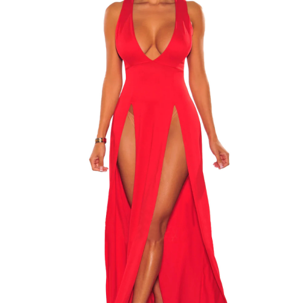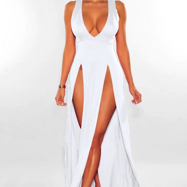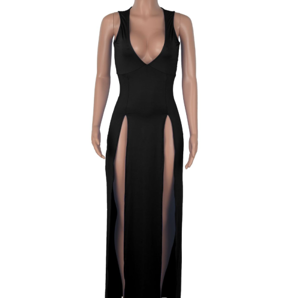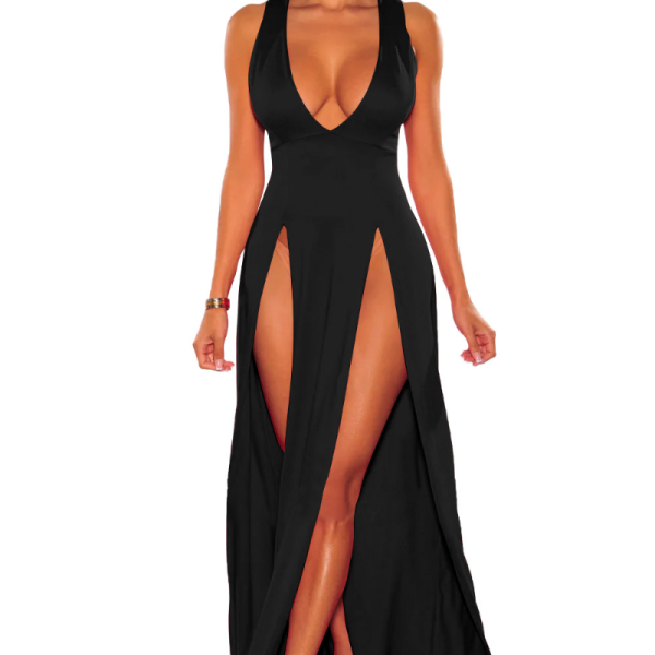 New Women Sexy Deep V-neck High Split Long Dress Evening Party Nightclub Dresses