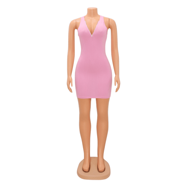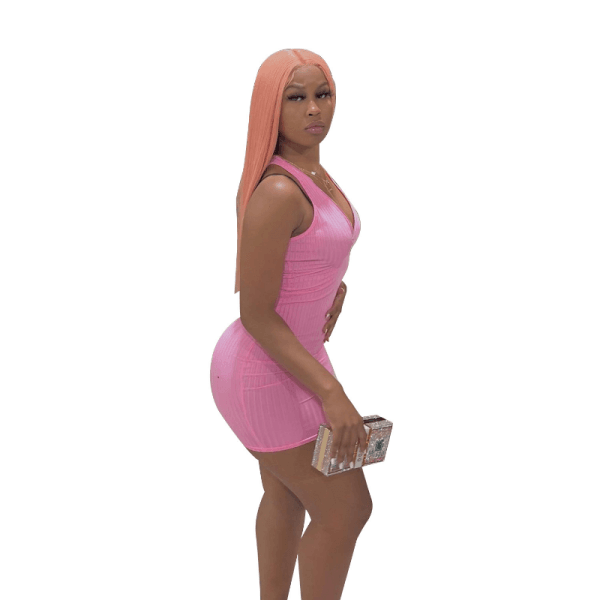 Fashion Women’s Sexy V-neck Tank Dress Pleated Bodycon Party Mini Dress Clubwear